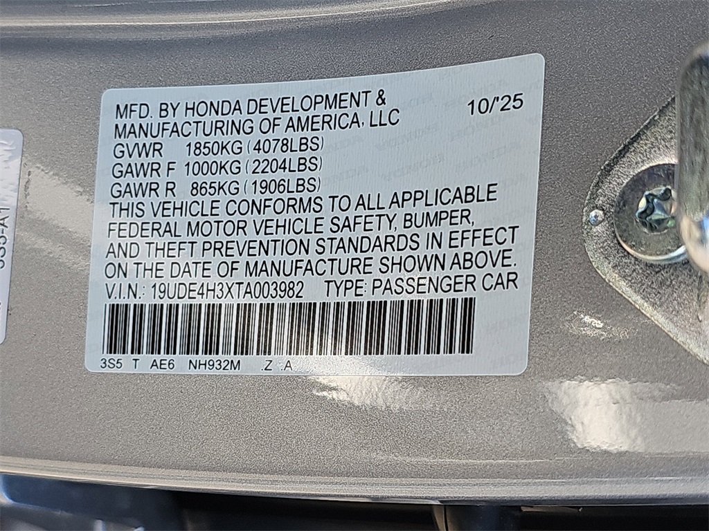 VIN 19UDE4H3XTA003982