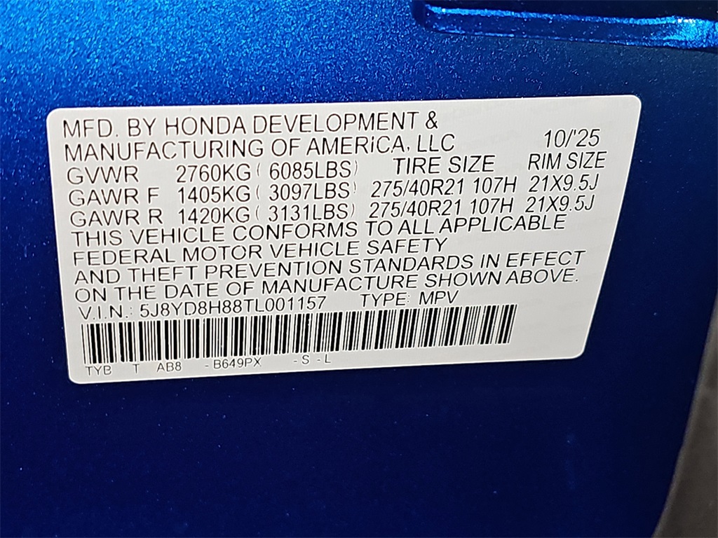 VIN 5J8YD8H88TL001157