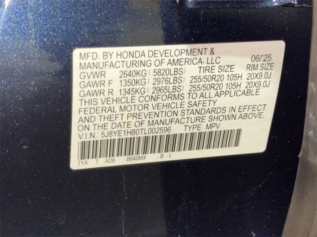 VIN 5J8YE1H80TL002596