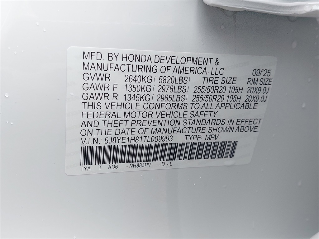 VIN 5J8YE1H81TL009993