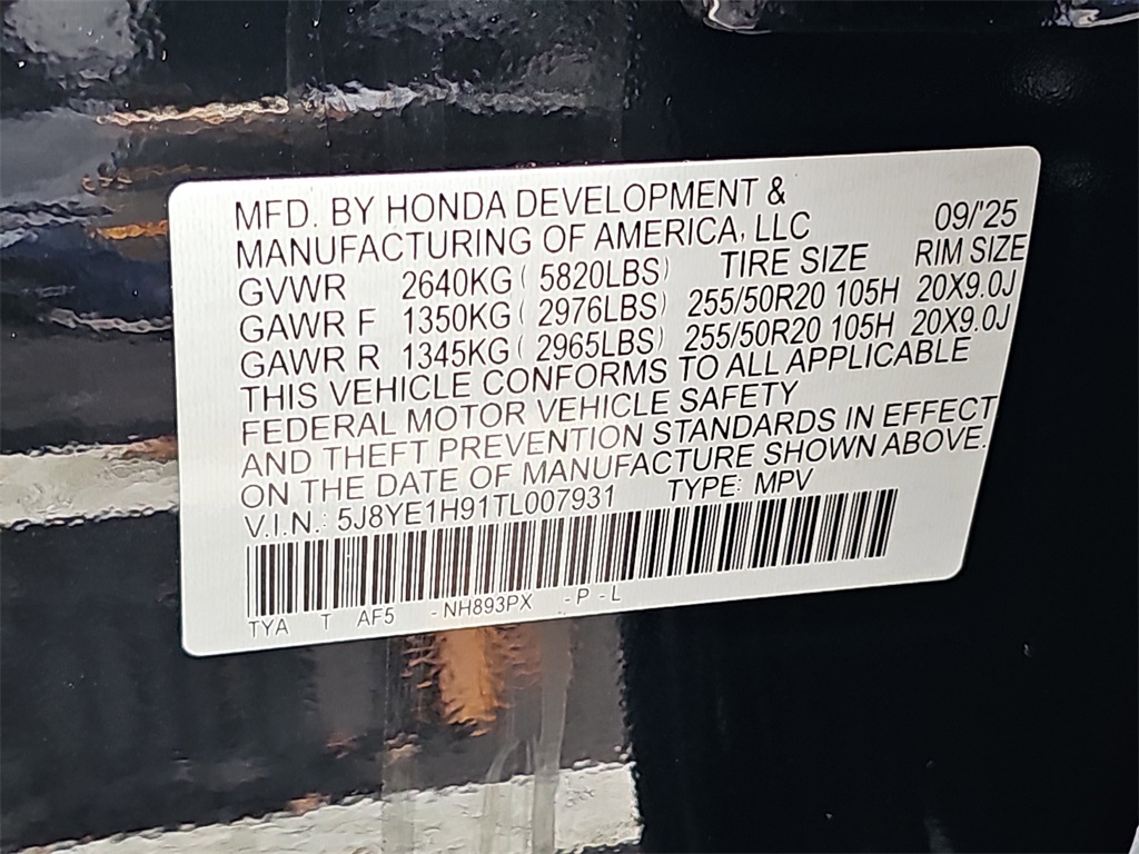 VIN 5J8YE1H91TL007931