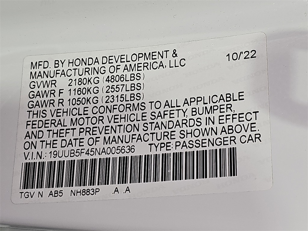 - 2L I-4 gasoline direct injection, DOHC, VTEC variable valve control, intercooled turbo, premium unleaded, engine with 272HP
