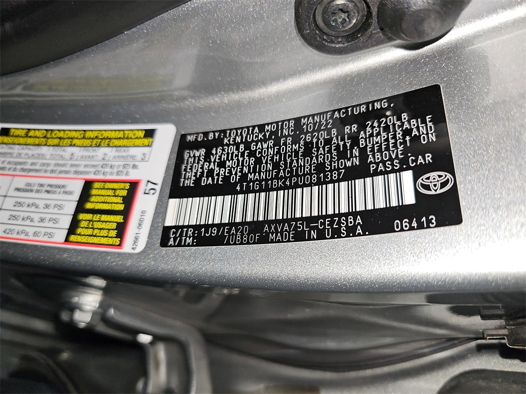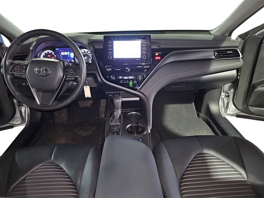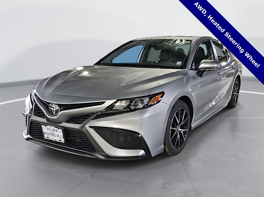 CARFAX One-Owner. Clean CARFAX. Celestial Silver Metallic 2023 Toyota Camry SE AWD 8-Speed Automatic 2.5L I4 DOHC 16V Black w/Fabric Seat Trim, ABS brakes, Active Cruise Control, Alloy wheels, Electronic Stability Control, Front dual zone A/C, Heated door mirrors, Illuminated entry, Low tire pressure warning, Remote keyless entry, Traction control.